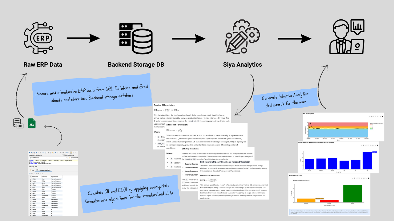 Managing vessel efficiency and staying ahead of evolving IMO regulations is a significant operational challenge. This module transforms complex fuel consumption, voyage, and event data into a clear, actionable dashboard, giving you a real-time command center for your fleet’s environmental performance.How It Works: From Data to Decision
