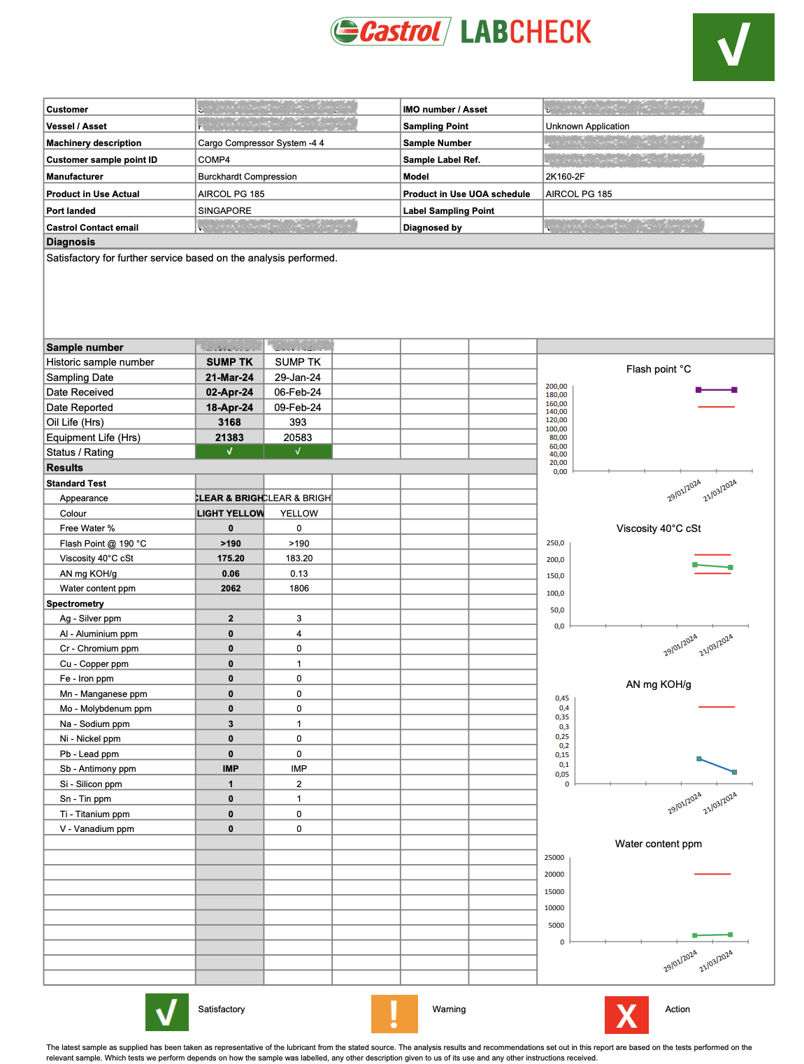 - Laboratory Results: Lube oil analysis reports are sourced directly from Castrol, Chevron, Gulf, Shell, and other certified labs.
