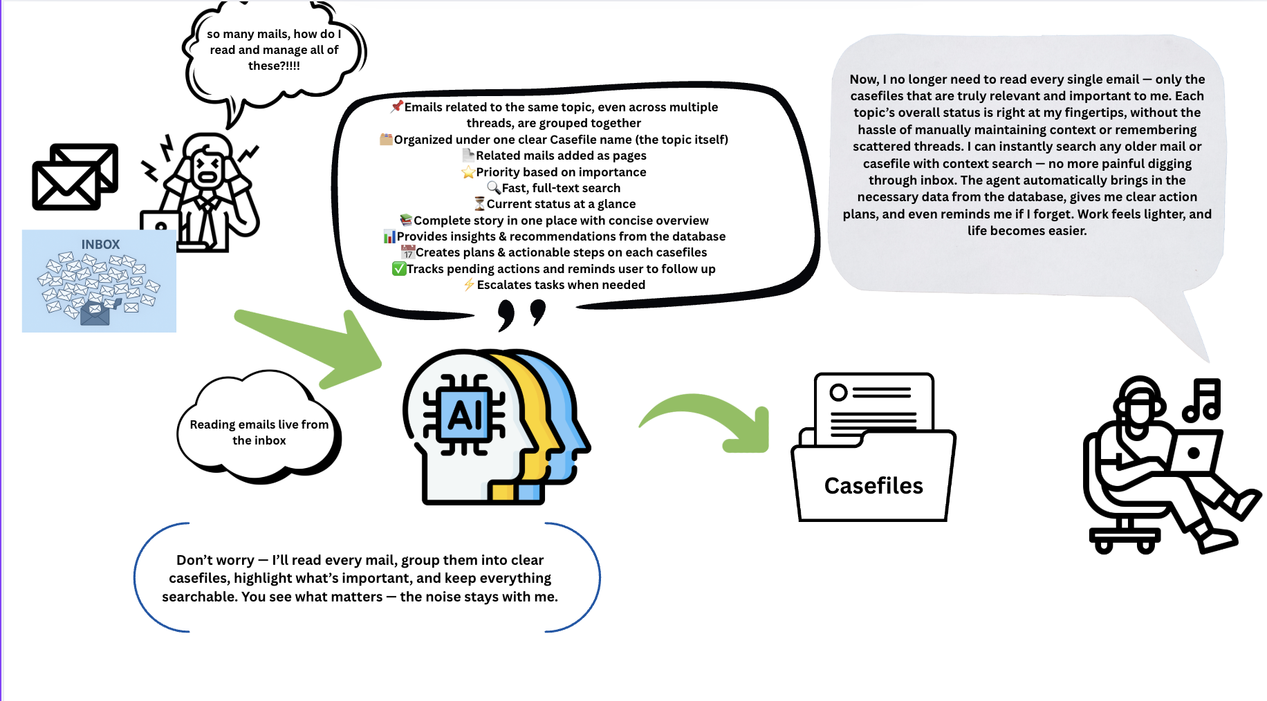 In our hyper-connected world, email remains the backbone of both professional and personal communication. Yet, critical information gets buried in endless threads, scattered across folders, and lost in the daily deluge of messages. From business operations drowning in client communications to personal inboxes flooded with financial statements, job applications, subscription updates, and yes—even spam that sometimes contains important information—we all struggle with the same fundamental challenge: How do we extract meaningful intelligence from the chaos? What if we could automatically transform this email chaos into structured, searchable knowledge that adapts to any domain or personal workflow? This post introduces a universal email intelligence system that uses AI to convert raw email streams into organized “casefiles” - think of them as intelligent books where each related email becomes a page, complete with an index, summaries, contextual understanding, and attachments. Every casefile tells a complete story and journey: your job search with each application and response as separate pages, a legal case with discovery documents and client correspondence chronologically organized, or your investment portfolio with each financial statement properly catalogued. Each casefile provides an overall summary for quick understanding and tracks current status at a glance. Whether you’re managing enterprise operations, running a small business, or simply trying to stay organized in your personal life, this system creates a living library from your inbox. Originally developed for maritime operations, this approach proves universally applicable wherever email volume overwhelms human curation capacity - which, let’s be honest, is everywhere.The Universal Problem: Information Overload in Every Inbox